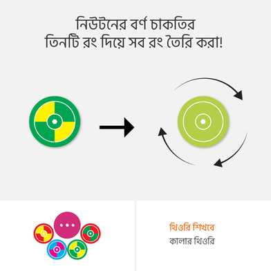 ৬। ঐতিহাসিক নিউটনের কালার ডিস্কের সাথে পরিচিত করে, যা রঙ তত্ত্ব এবং আলোর গতিবিদ্যা বুঝতে হাতেকলমে সাহায্য করে। বিজ্ঞানবাক্সের ভিতরে এরকম বেশ কয়েকটি কালার ডিস্ক দেয়া আছে।