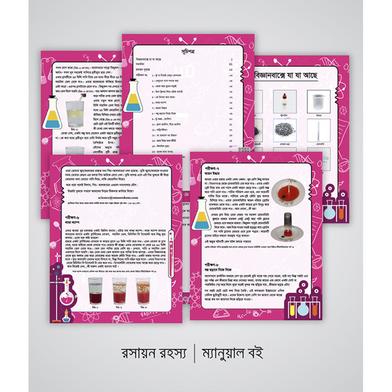 ফুঁ না দিয়েই বেলুন ফোলানো, কিশমিশকে নাচানো, দুধের মধ্যে রংধনু বানানো, লাভা ল্যাম্প তৈরি করা, হারানো কয়েন উদ্ধার করা, তড়িৎ দিয়ে লবণ ভাঙা, কার্বন ডাই অক্সাইড গ্যাস সনাক্ত করা এমন মোট ২০টি এক্সপেরিমেন্ট আছে রসায়ন রহস্যে।